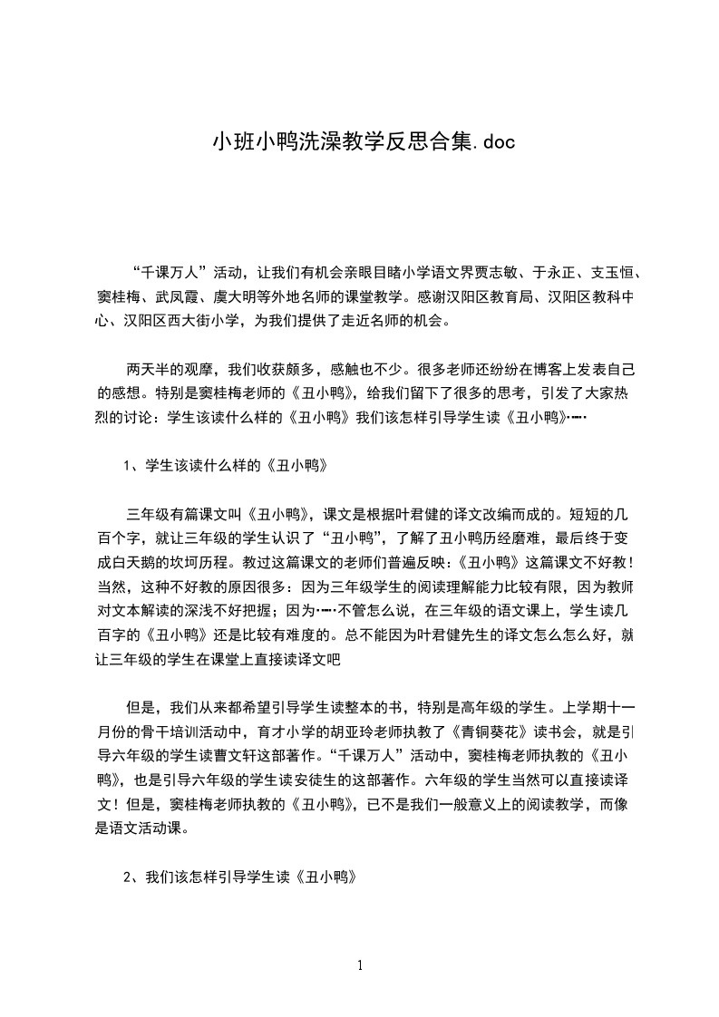 五、演唱歌曲师:(幼儿每人一条小毛巾)让我们拿着小毛巾和小鸭一起来洗澡吧!重点指导:能有自然地声音演唱,能跟着老师做一些简单的动作