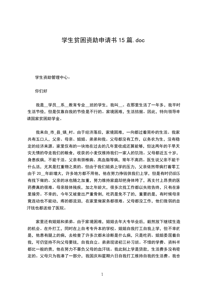 我是__班的学生。因家庭经济困难,特申请贫困补助。