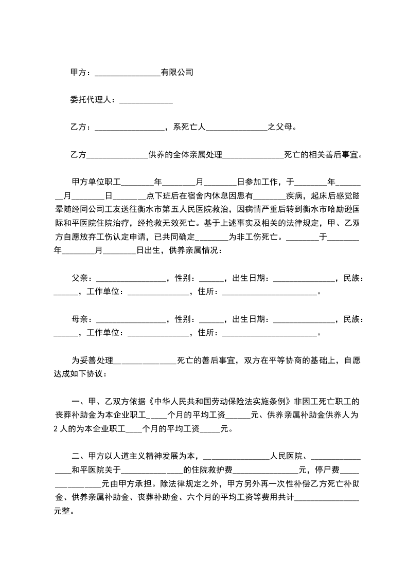 为妥善处理_______________死亡的善后事宜,双方在平等协商的基础上,自愿达成如下协议: