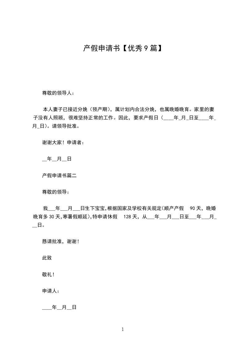 由本人怀孕并临近生产(预产期是_年_月_日),为确保生产顺利并能及时回到工作岗位,根据[___规定]本人申请休产假__天晚育假__天(自_年_月_日至_年_月_日,共计___天)。休假期间本人工作由__代为接管,休假期间如有工作咨询,请致电:133___。