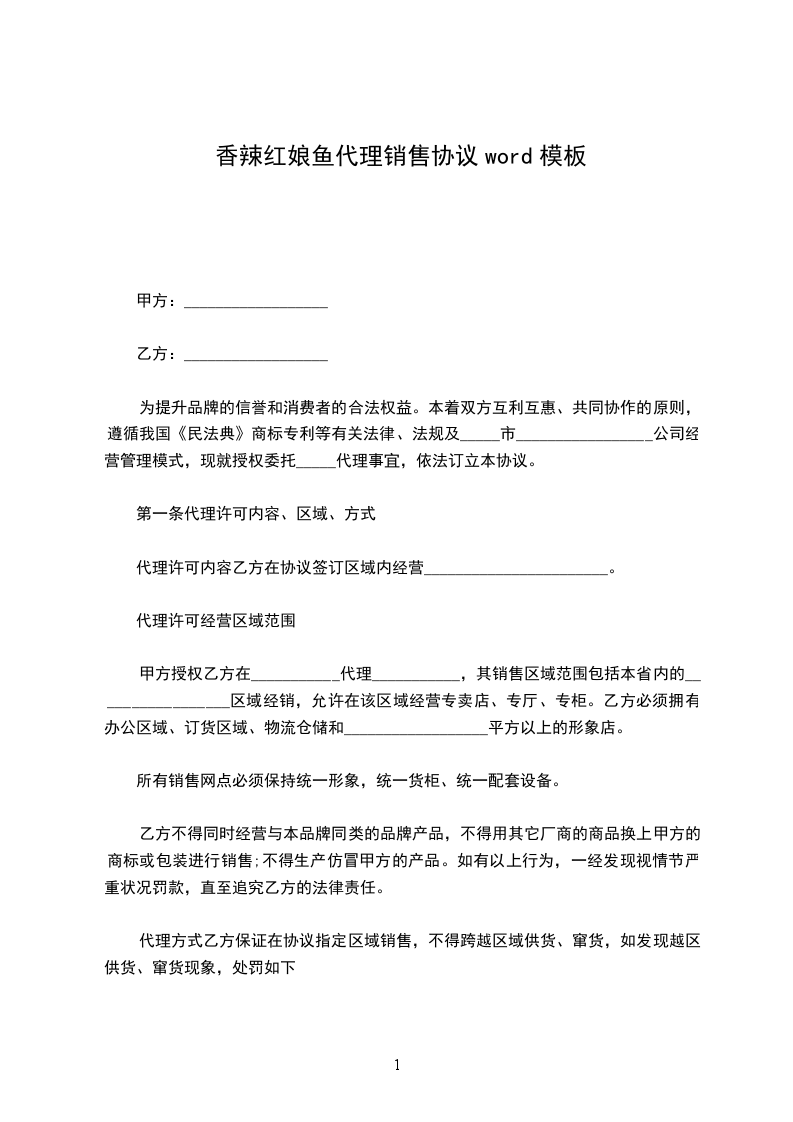 代理方式乙方保证在协议指定区域销售,不得跨越区域供货、窜货,如发现越区供货、窜货现象,处罚如下