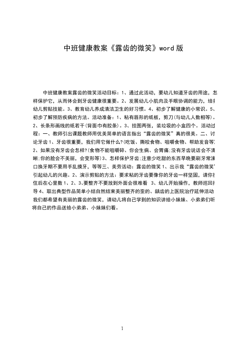 中班健康教案露齿的微笑活动目标: