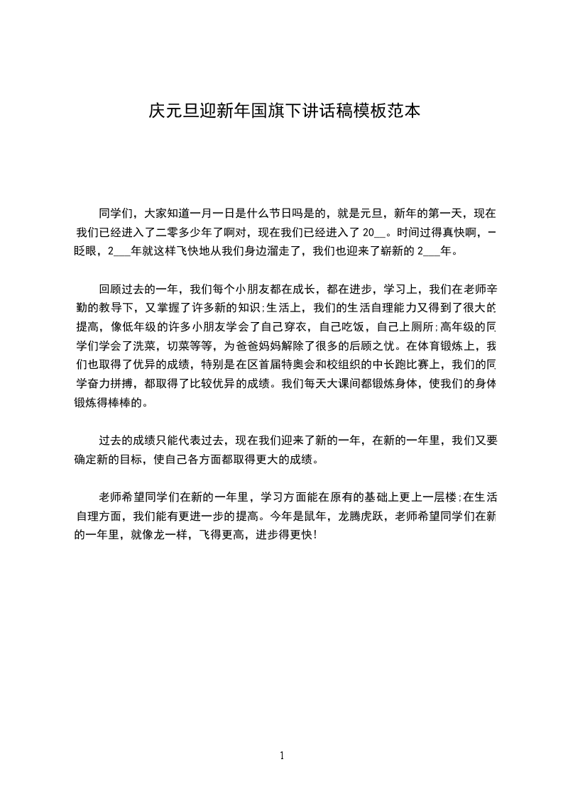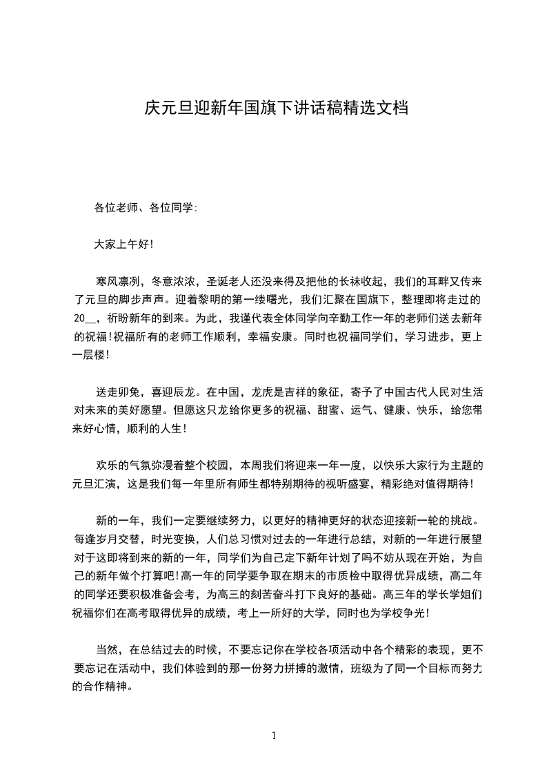 20__年迎元旦国旗下精彩讲话稿