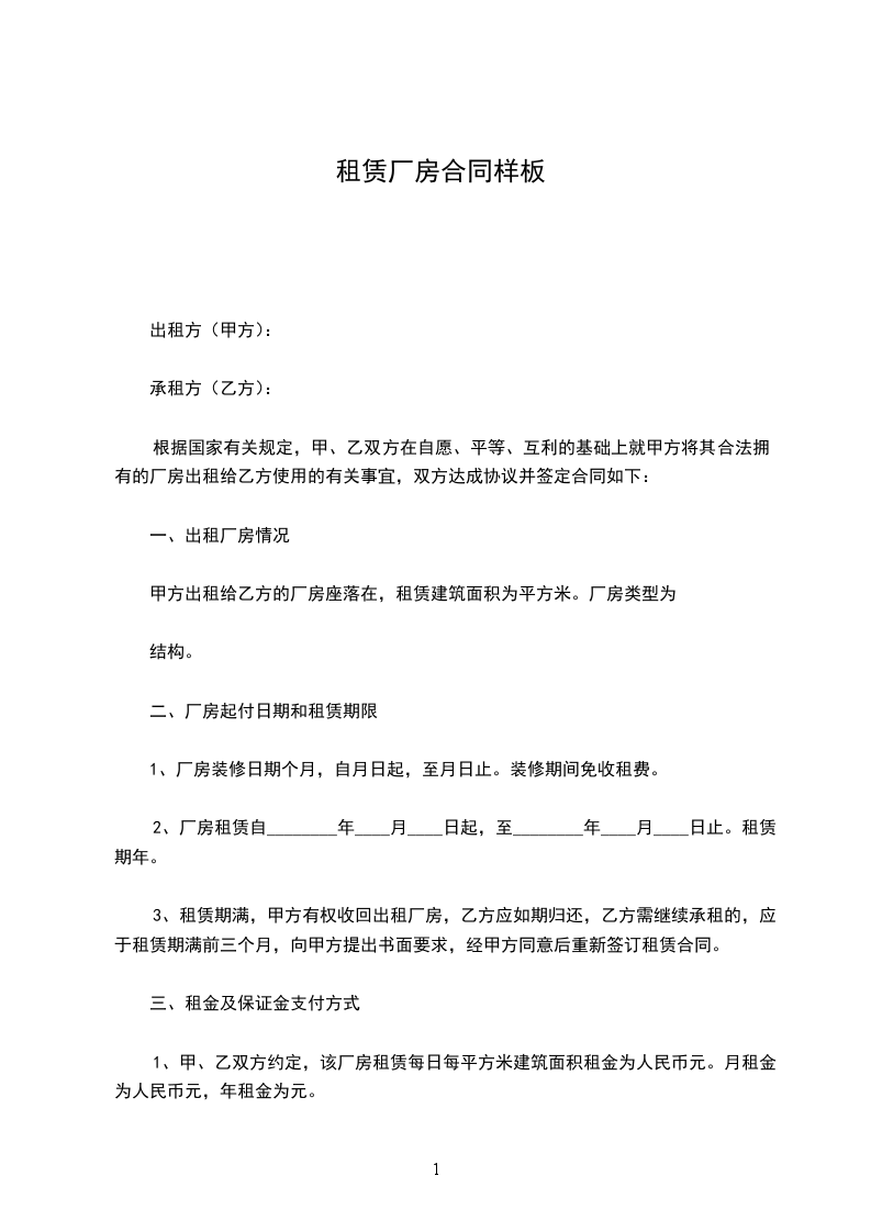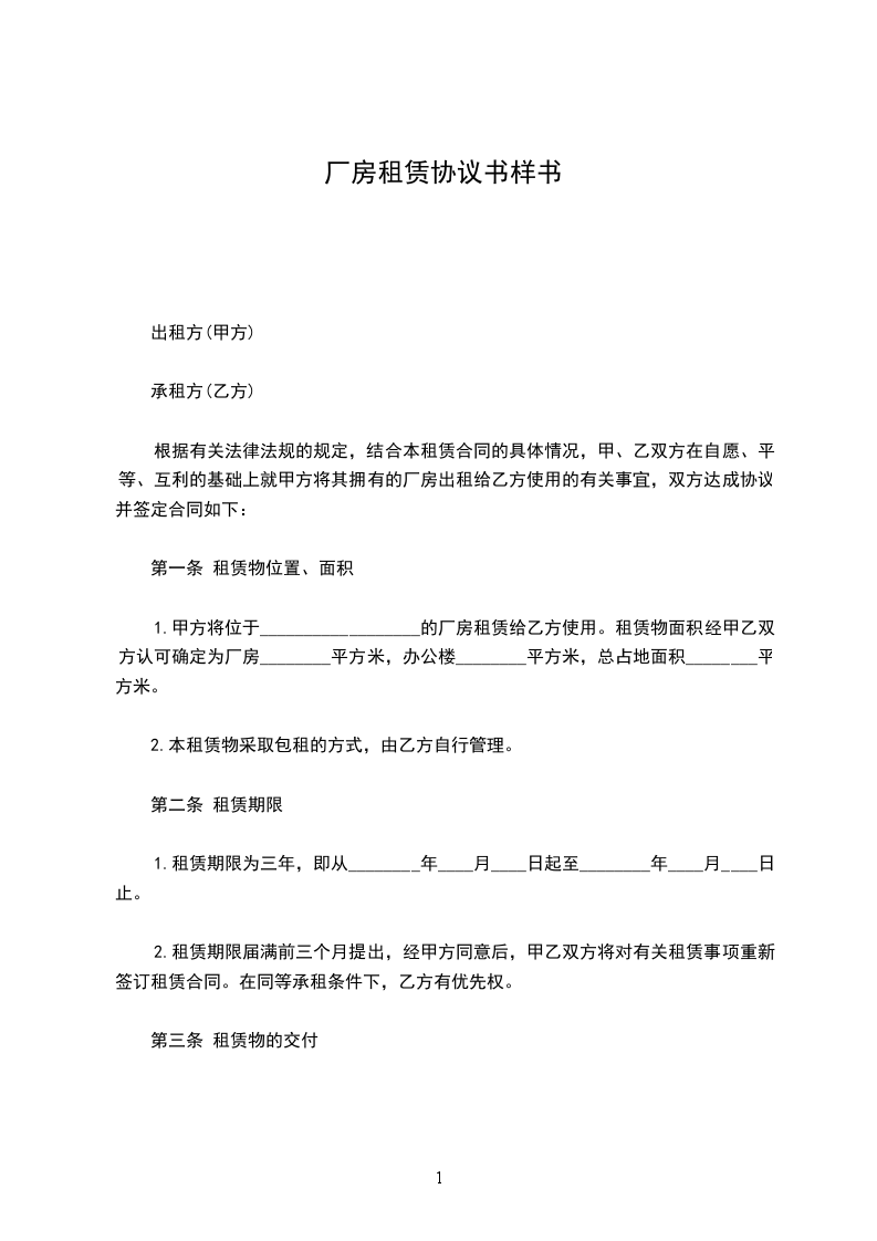 2、厂房租赁自________年____月____日起,至________年____月____日止。租赁期________年。