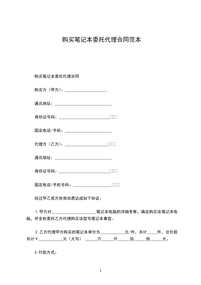 购买笔记本委托代理合同