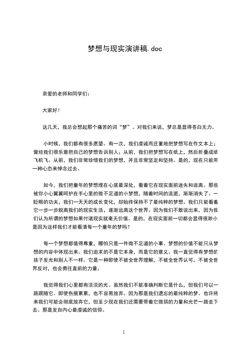 梦想与现实演讲稿10