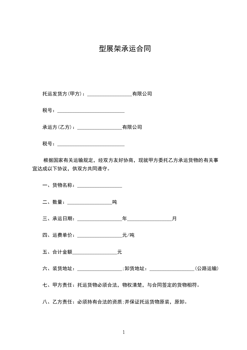 八、乙方责任:必须持有合法的资质;并保证托运货物原装,原卸。