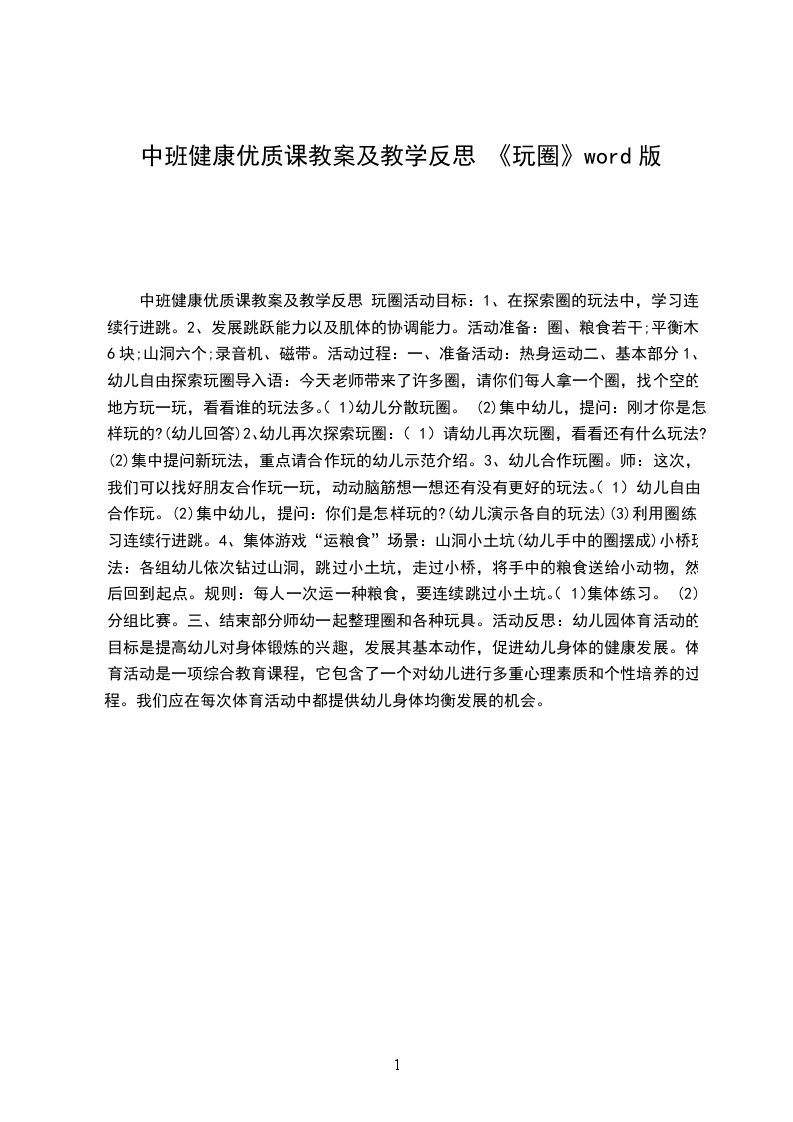 中班健康优质课教案及教学反思 玩圈活动目标: