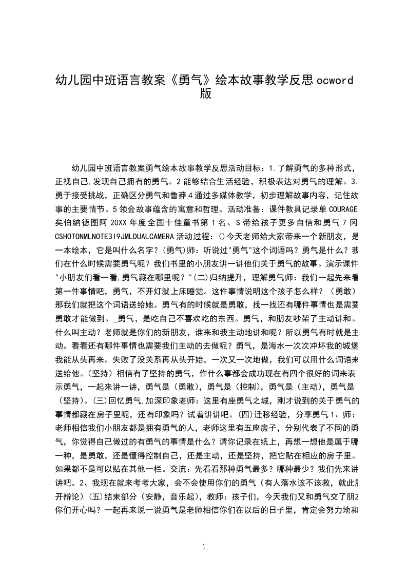 活动过程:()今天老师给大家带来一个新朋友,是一本绘本,它是叫什么名字?(勇气)师:听说过"勇气"这个词语吗?勇气是什么?我们在什么时候需要勇气呢?我们书里的小朋友讲一讲他们关于勇气的故事。演示课件,"小朋友们看一看,勇气藏在哪里呢?"