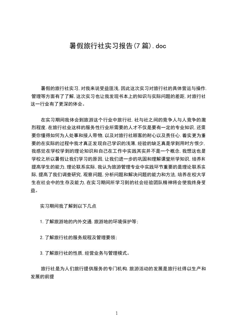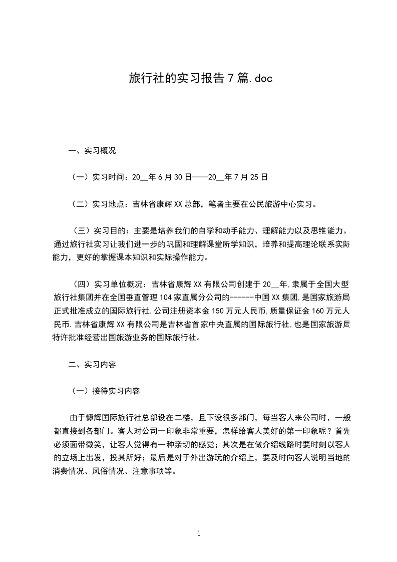 关于旅行社的实习报告7