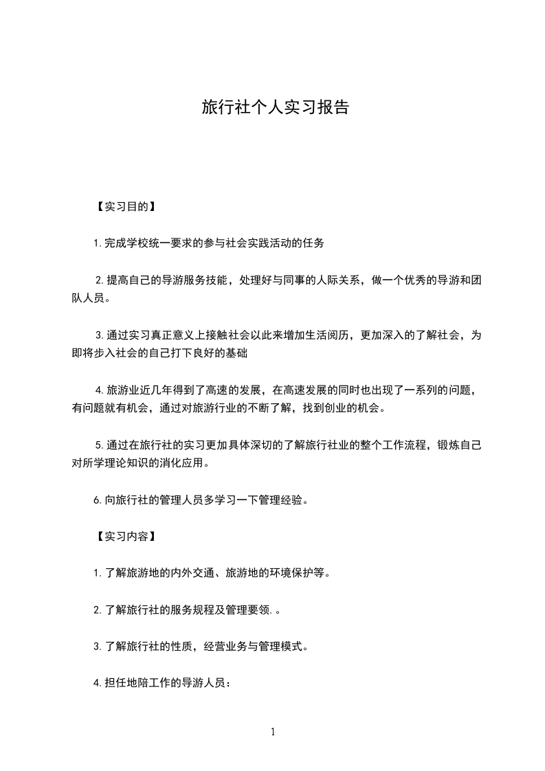 关于旅行社的实习报告6