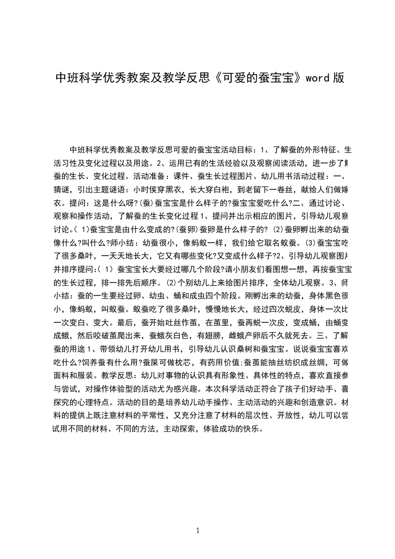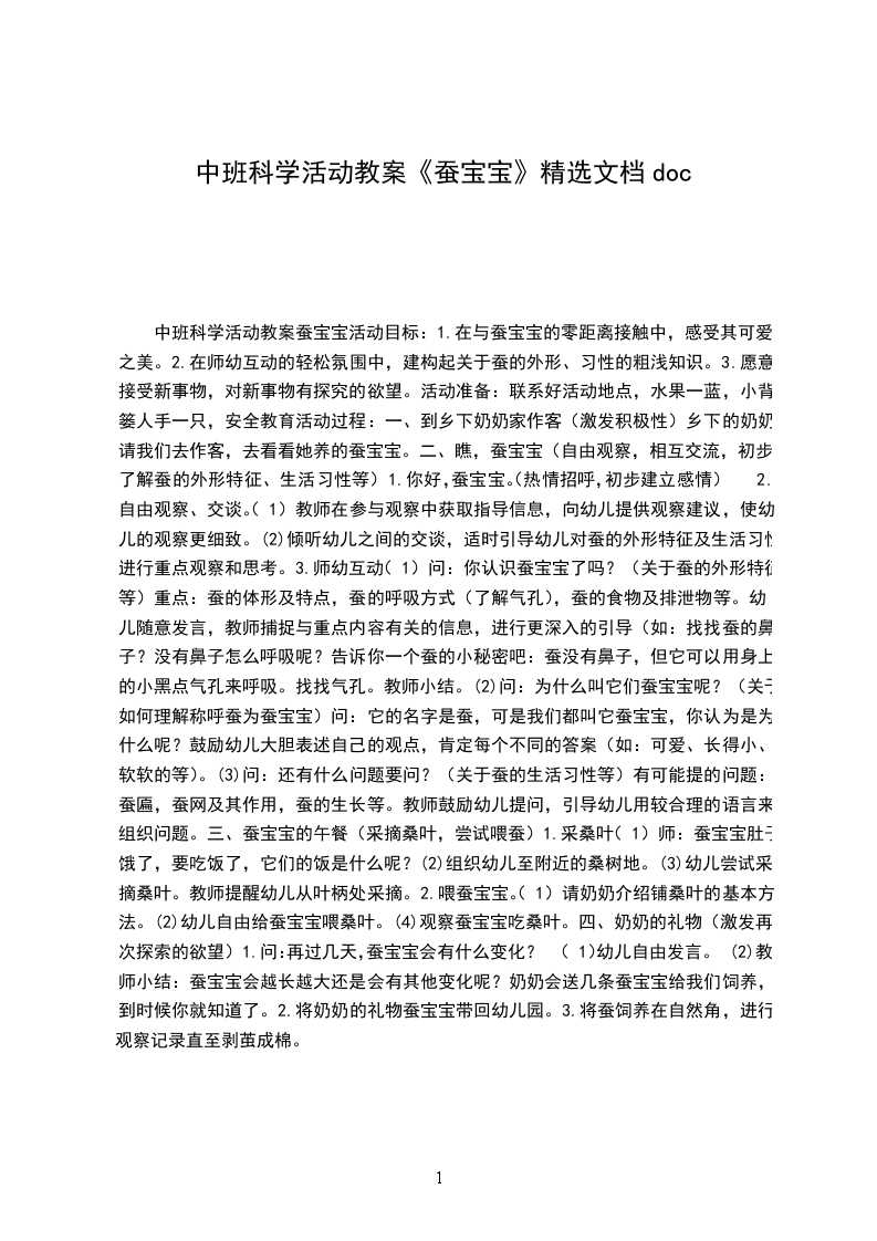 中班科学优秀教案及教学反思可爱的蚕宝宝活动目标: