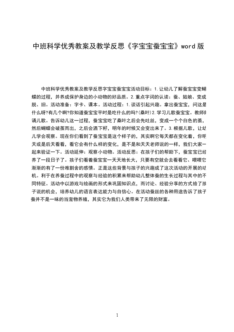 1、带领幼儿打开幼儿用书,引导幼儿认识桑树和蚕宝宝。说说蚕宝宝喜欢吃什么?饲养蚕有什么用?蚕屎可做枕芯,有药用价值;蚕茧能抽丝纺织成丝绸,可做面料和服装。教学反思:幼儿对事物的认识具有形象性、具体性的特点,喜欢直接参与尝试,对操作体验型的活动尤为感兴趣。本次科学活动正符合了孩子们好动手、喜探究的心理特点。活动的目的是培养幼儿动手操作、主动活动的兴趣和创造意识。材料的提供上既注意材料的平常性,又充分注意了材料的层次性、开放性,幼儿可以尝试用不同的材料、不同的方法,主动探索,体验成功的快乐。