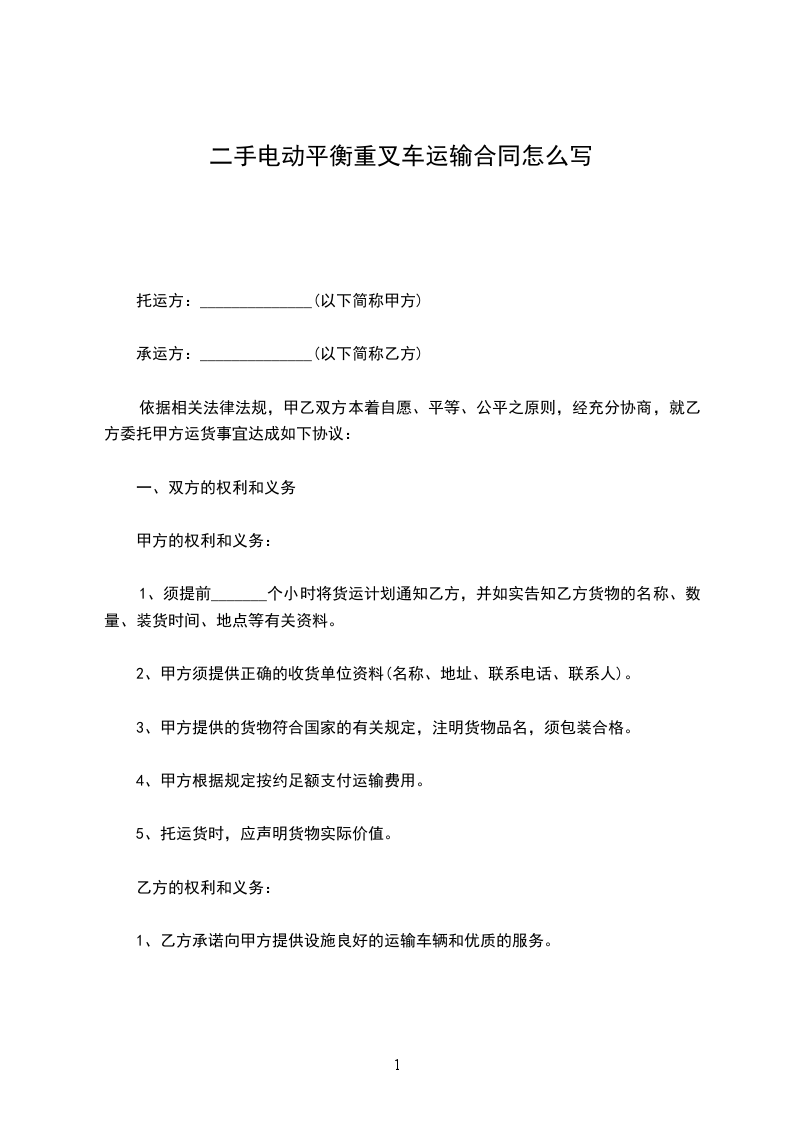 依据相关法律法规,甲乙双方本着自愿、平等、公平之原则,经充分协商,就乙方委托甲方运货事宜达成如下协议: