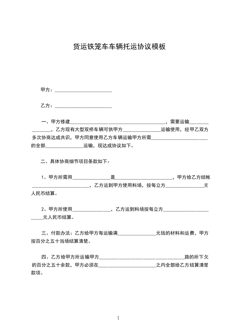 货运铁笼车车辆托运协议模板