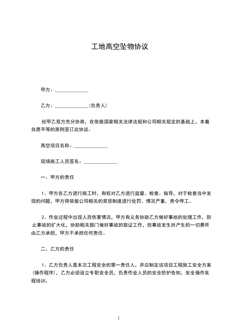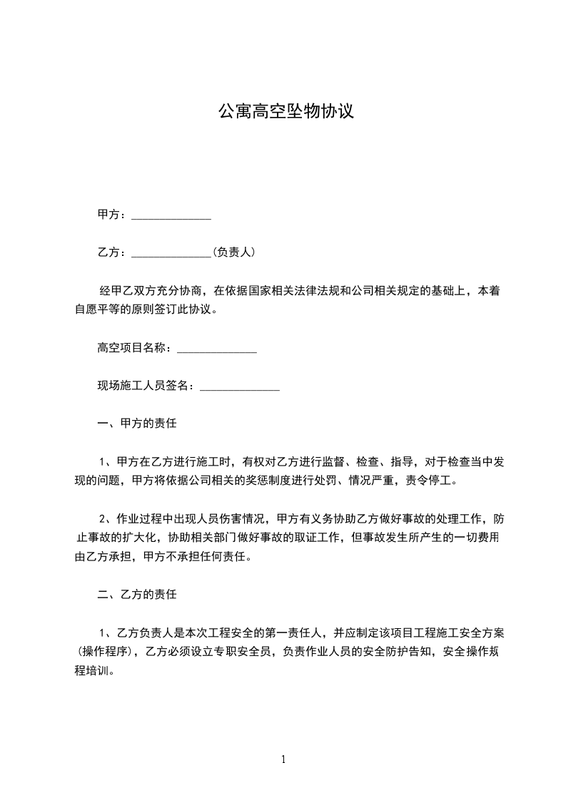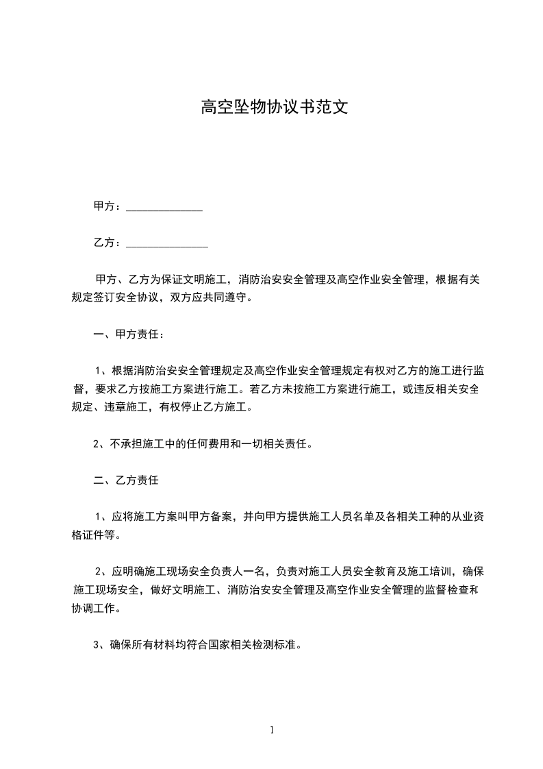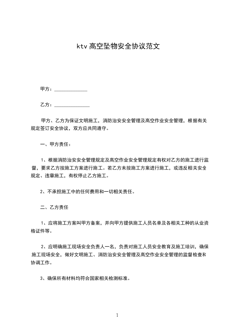甲方、乙方为保证文明施工,消防治安安全管理及高空作业安全管理,根据有关规定签订安全协议,双方应共同遵守。