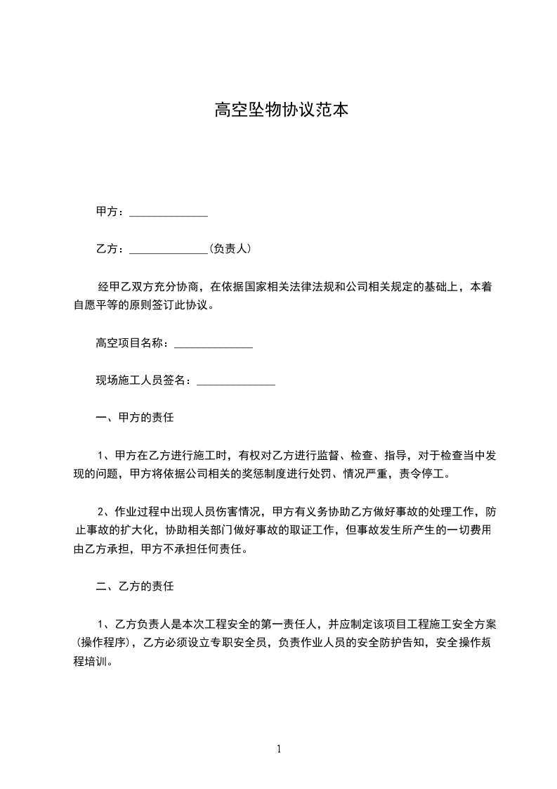 13、乙方在施工中人员凡在离地面两米以上进行的作业,都属于高空作业。所有高空作业者,不论什么工种,进行作业的时间、地点,也不论专业或临时,均应执行高空作业安全管理规定。