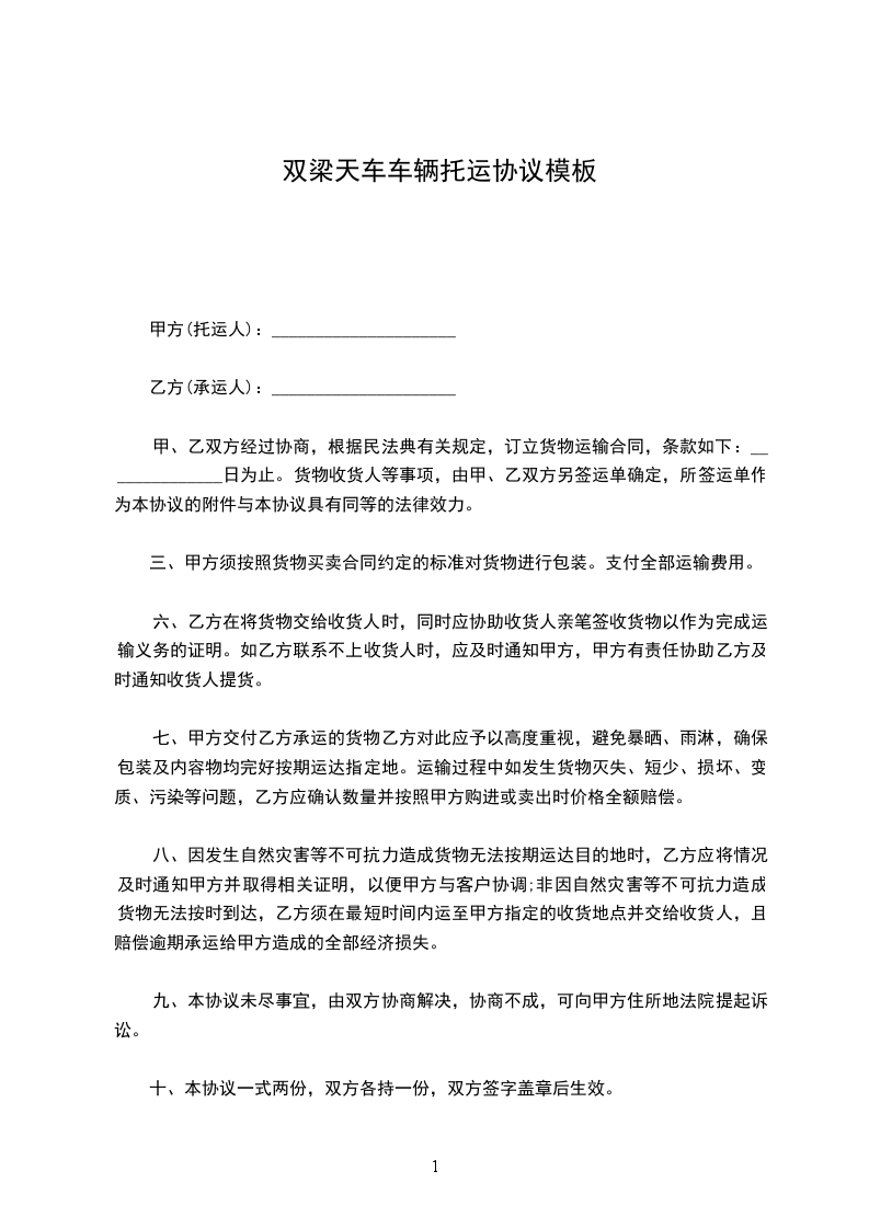 甲、乙双方经过协商,根据民法典有关规定,订立货物运输合同,条款如下:________________________日为止。货物收货人等事项,由甲、乙双方另签运单确定,所签运单作为本协议的附件与本协议具有同等的法律效力。
