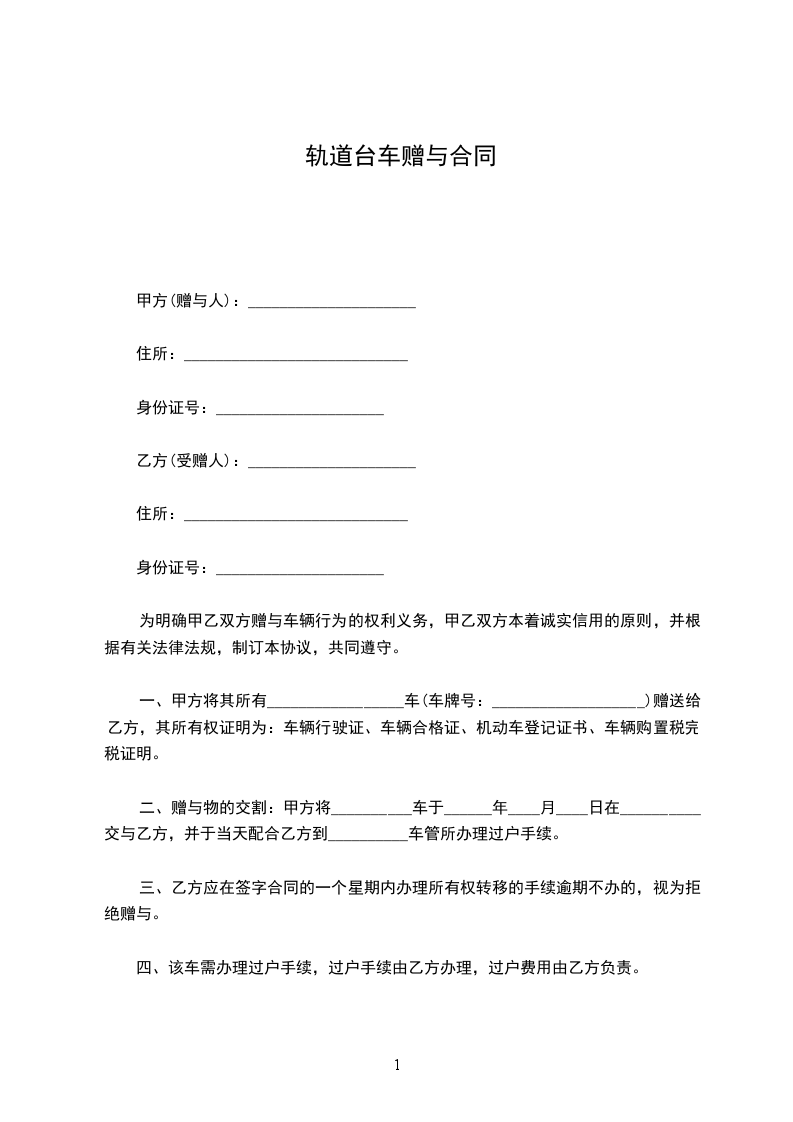二手轨道台车车辆托运协议模板