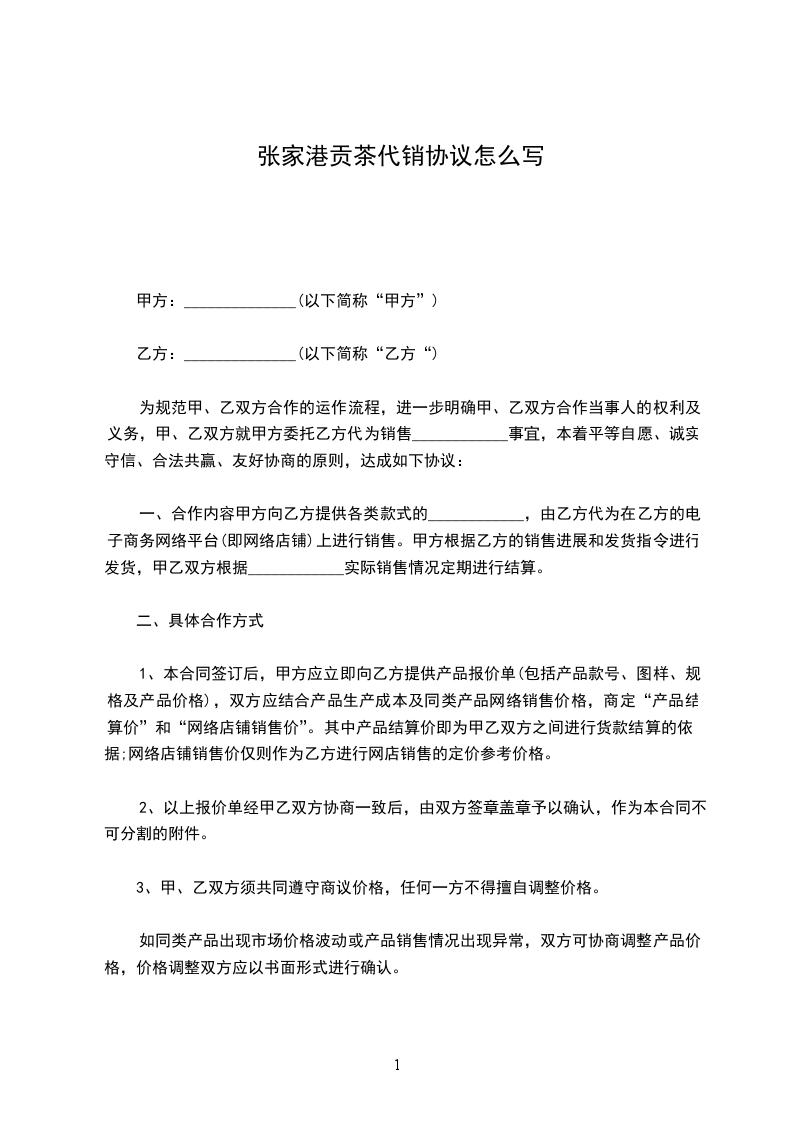 伍家台贡茶代销协议怎么写
