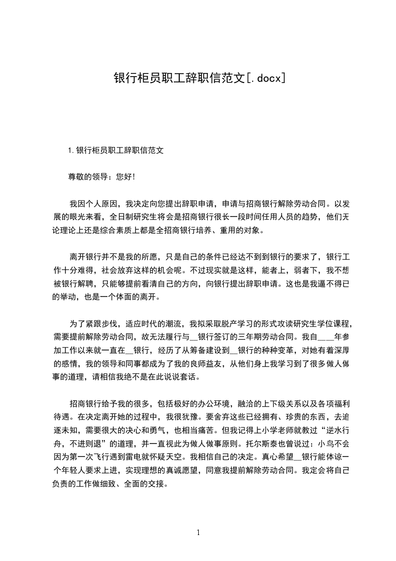 我是___,今天怀着复杂的心情写下这份辞职报告。___行的是我职业生涯中珍贵而十分有意义的开端。在领导、同事的关怀指导和帮助下,使我成为一名具有一定实际工作能力和处理日常事务能力的银行从业人员。我十分感激帮助和见证我成长的各位领导、同事。正是刚入行时领导与同事们不遗余力地教导,才使我迅速掌握业务,从而在岗位上做好本职工作;正是迷茫失落时同事的关心帮助,才使我振奋精神,以积极的姿态投入到工作和生活中去。你们的教诲指导与帮助,我将永远铭记!