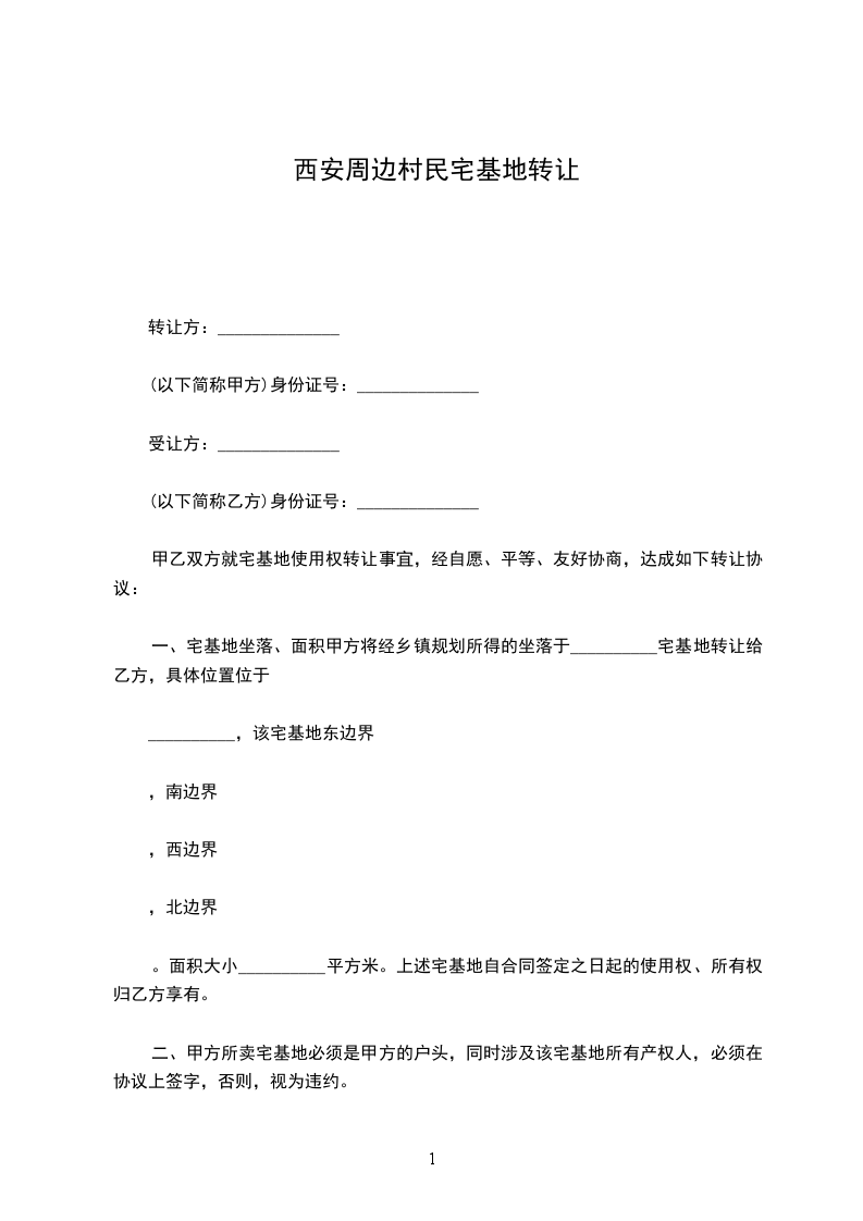 一、宅基地坐落、面积甲方将经乡镇规划所得的坐落于__________宅基地转让给乙方,具体位置位于