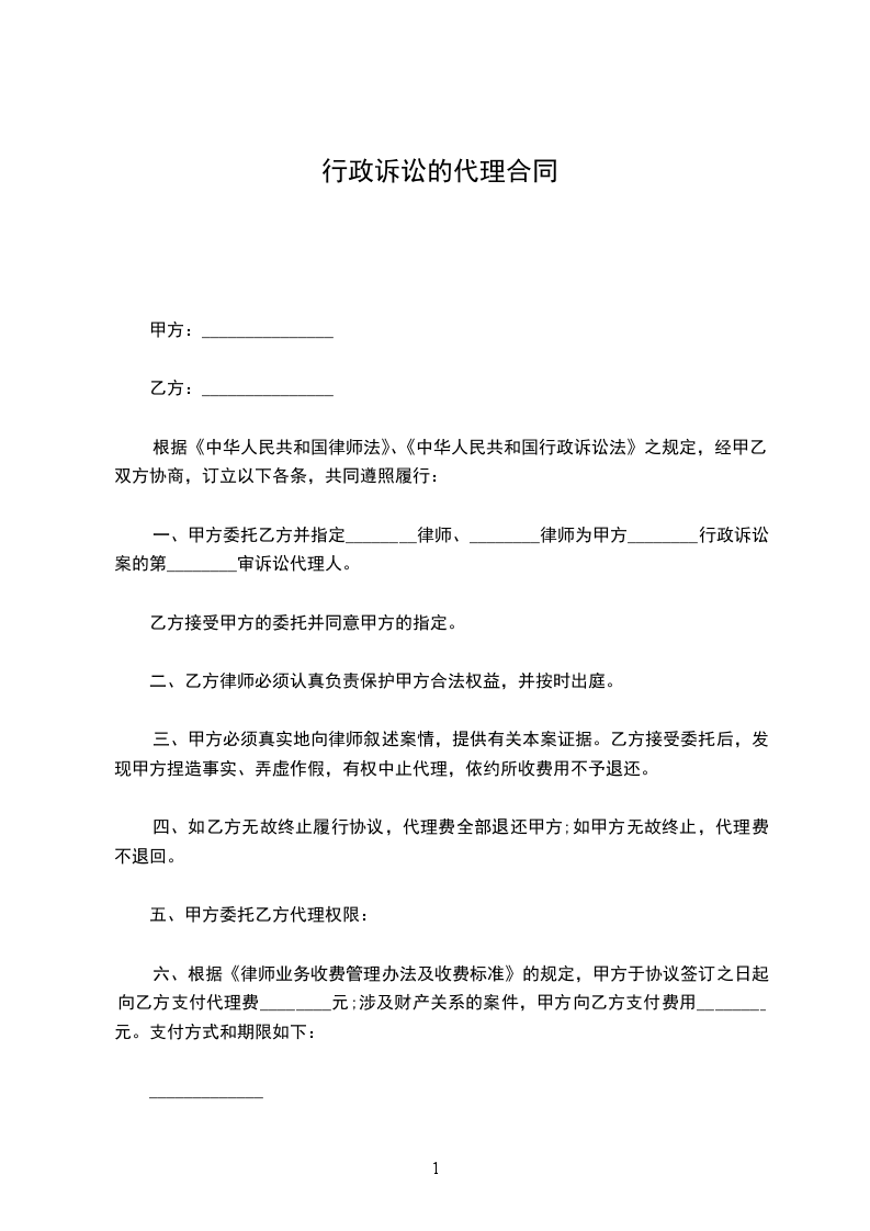 一、甲方委托乙方并指定________律师、________律师为甲方________行政诉讼案的第________审诉讼代理人。