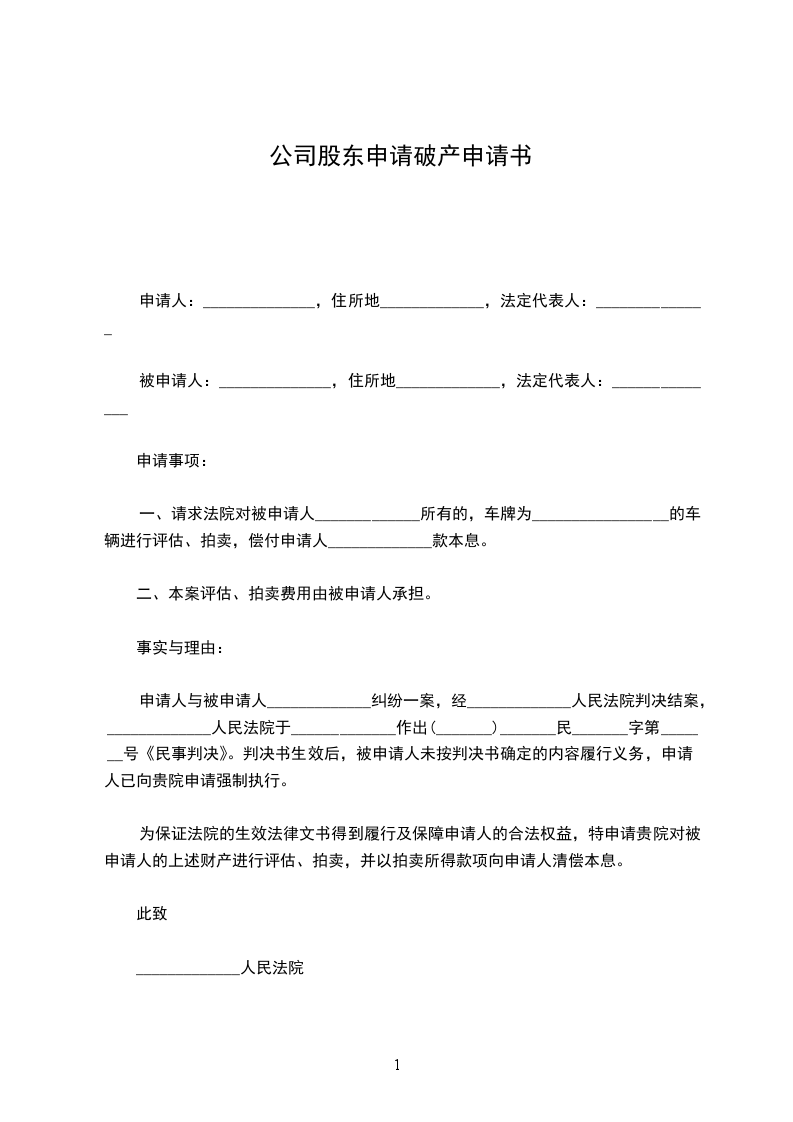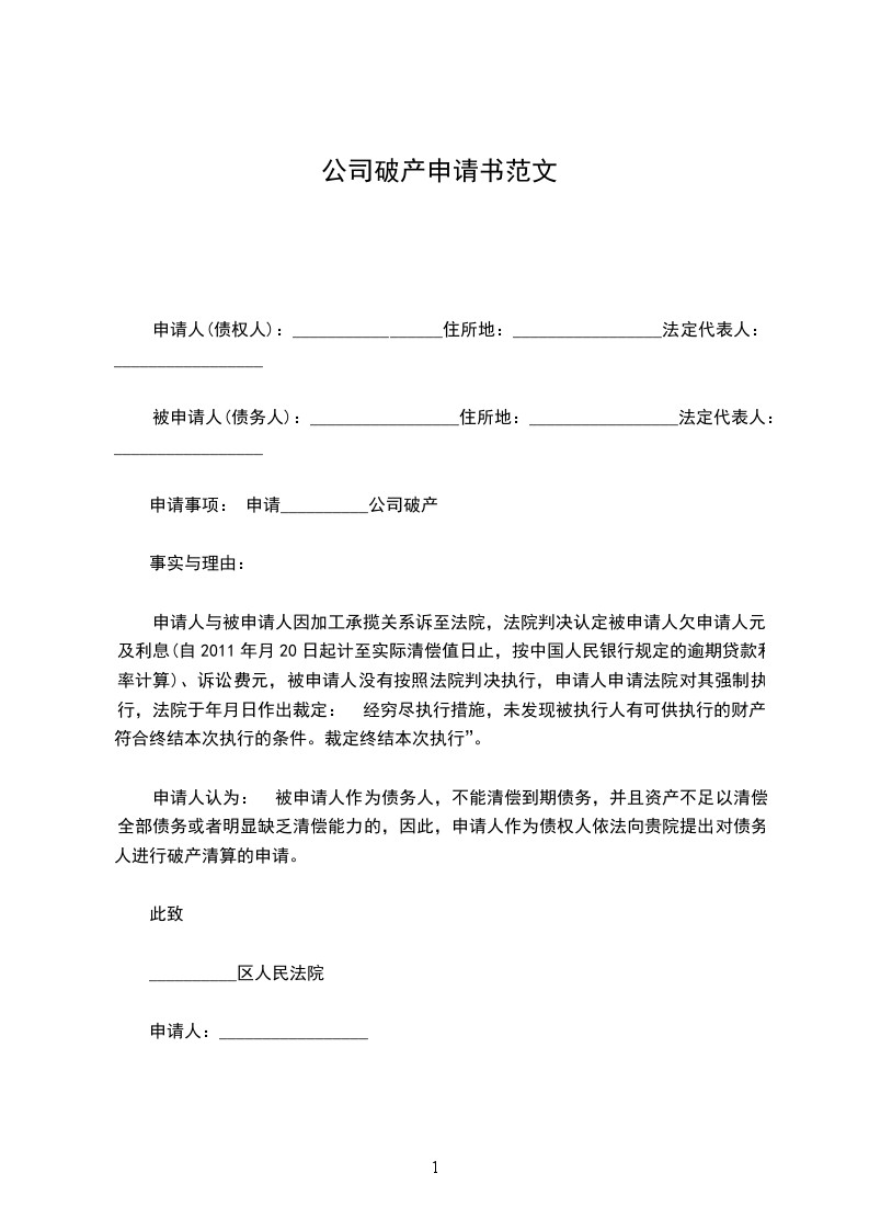 请求事项:申请______________有限公司破产。