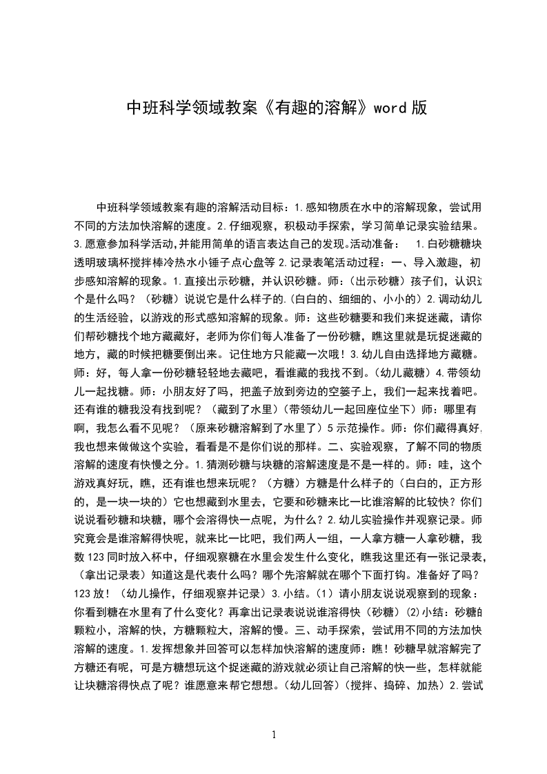 中班科学领域教案有趣的溶解活动目标: