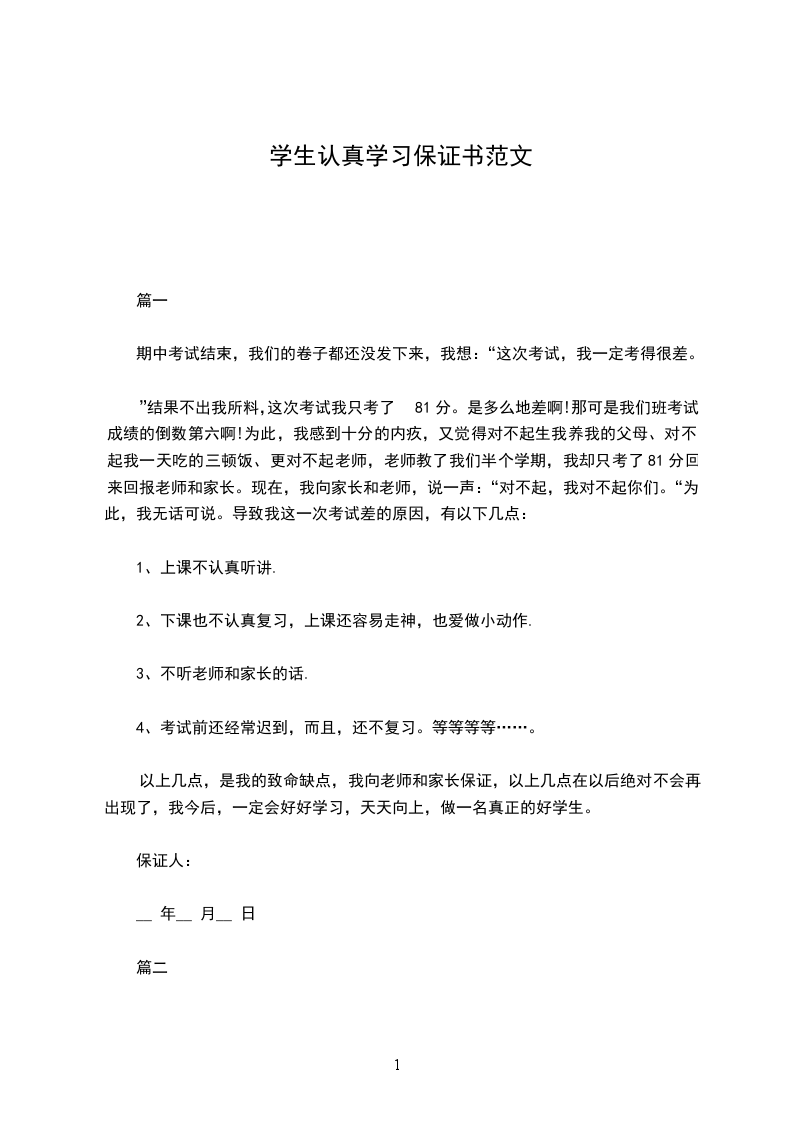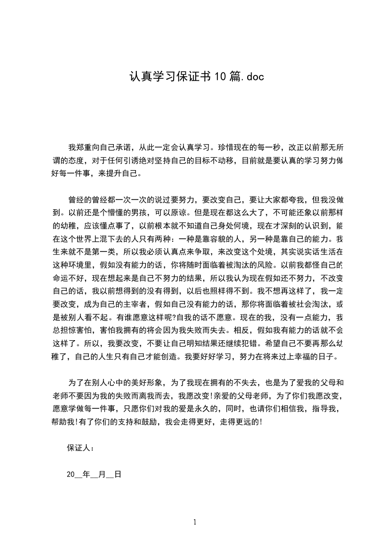 认真学习保证书2