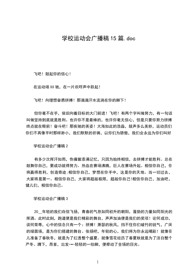 20__年轻的我们自信飞扬,青春的气息如同初升的朝阳,蓬勃的力量如同阳光的挥洒。此时此刻,跑道便是我们精彩的舞台,声声加油便是我们的奖项!论何成功,谈何荣辱,心中的信念只有一个:拼搏!萧瑟的秋风,挡不住你们破竹的锐气,广阔的绿茵场,是为你们搭建的舞台。张扬吧,年轻的心,我们将为你永远喝彩!就像花儿准备了春秋冬,就是为了红透整个盛夏。就像雪花经历了春夏秋就是为了洁白整个严冬。蹲下,昂首,出发……轻轻的一抬脚,便牵动了全场的目光。