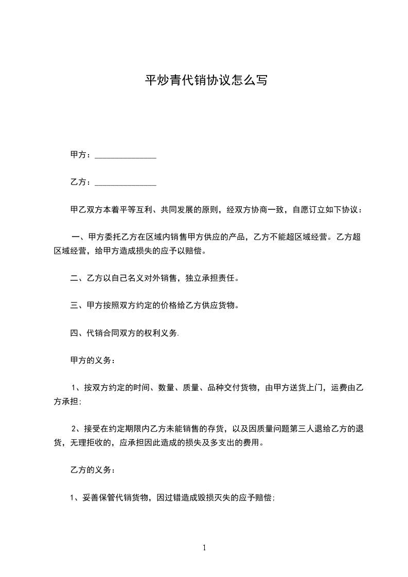 平炒青代销协议怎么写