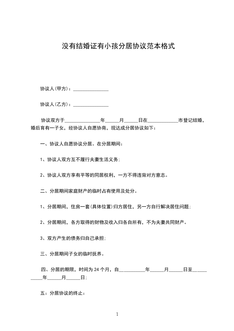 四、分居的期限,时间为24个月,自___________年______月______日至___________年______月______日;