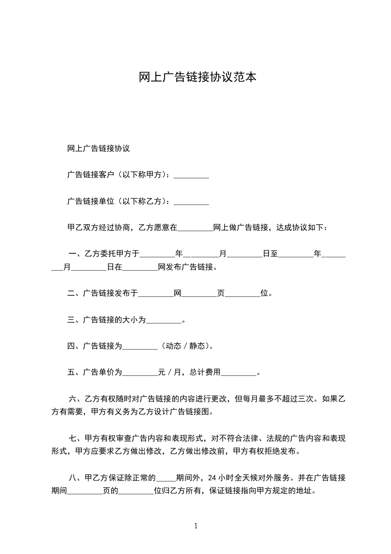 甲乙双方经过协商,乙方愿意在_________网上做广告链接,达成协议如下:
