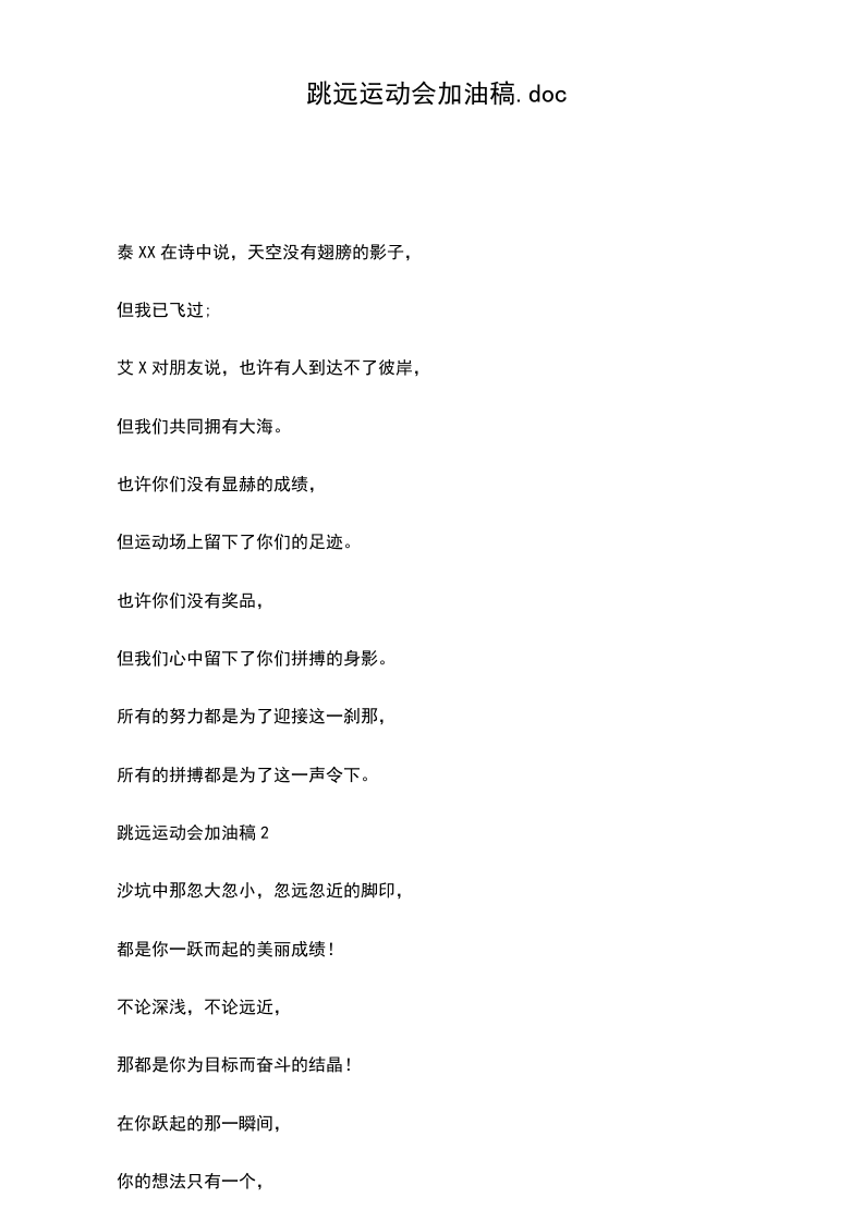 第一步,跳出你积攒的力量;第二步,跨出你心中的梦想;最后一步,展开你有力的翅膀。跳吧,运动员,跳出一个属于自己的距离!