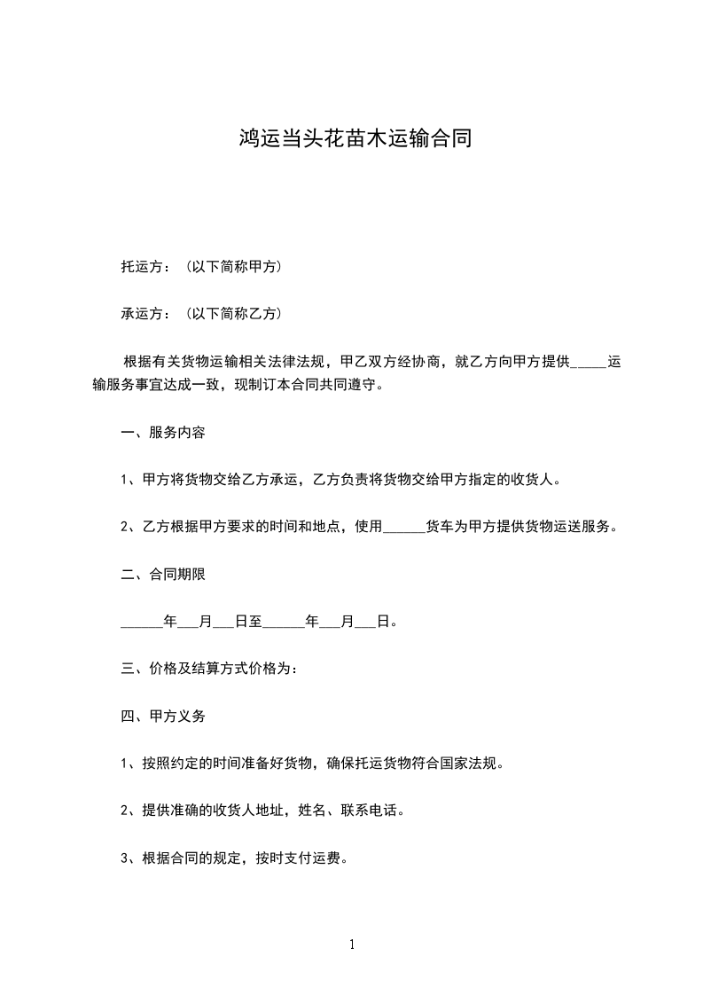 二、托运方委托承运方运输方运输的苗木根据托运方的实际发货而定,运价按照公司运价表而定。