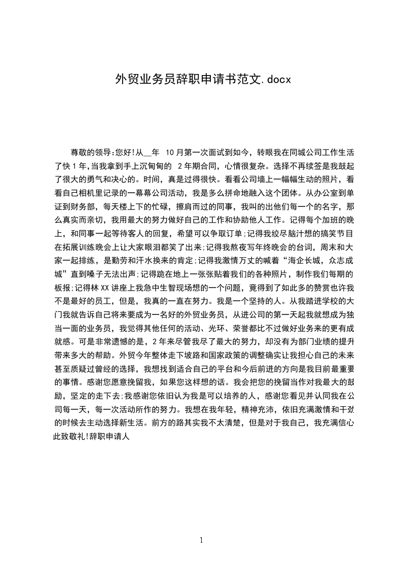 将来无论什么时候, 我都会为自己曾经是公司的一员而感到荣幸。 我确信在公司的这段工作经 历将是我整个职业生涯发展中相当重要的一部分。祝公司领导和所有同事身体健康、工作顺利! 再次对我的离职给公司带来的不便表示抱歉,同时我也希望公司能够体恤我的个人实 际,对我的申请予以考虑并批准。
