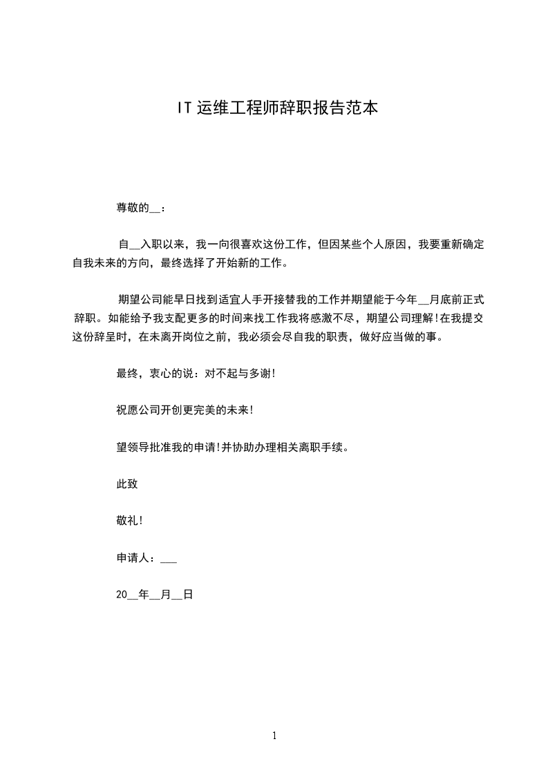 期望公司能早日找到适宜人手开接替我的工作并期望能于今年__月底前正式辞职。如能给予我支配更多的时间来找工作我将感激不尽,期望公司理解!在我提交这份辞呈时,在未离开岗位之前,我必须会尽自我的职责,做好应当做的事。