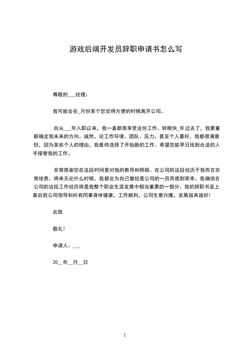 尊敬的___经理: