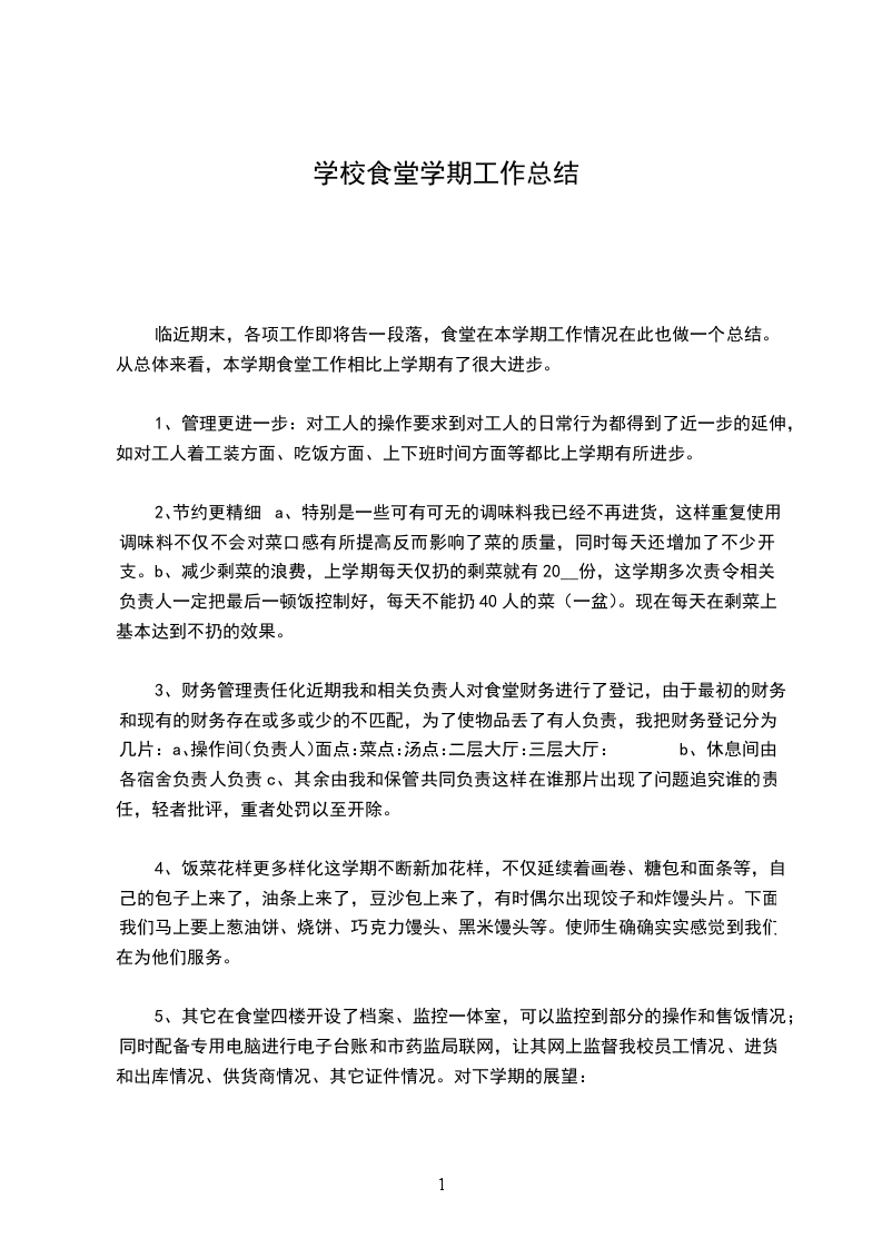 临近期末,各项工作即将告一段落,食堂在本学期工作情况在此也做一个总结。从总体来看,本学期食堂工作相比上学期有了很大进步。