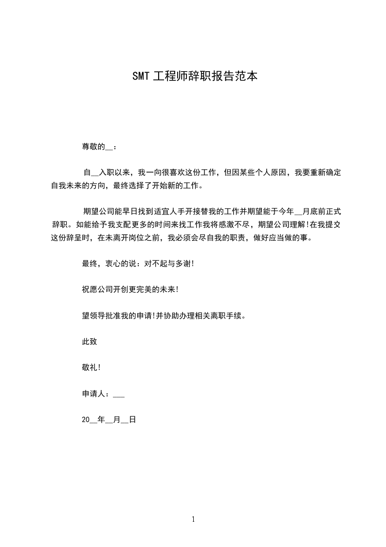 期望公司能早日找到适宜人手开接替我的工作并期望能于今年__月底前正式辞职。如能给予我支配更多的时间来找工作我将感激不尽,期望公司理解!在我提交这份辞呈时,在未离开岗位之前,我必须会尽自我的职责,做好应当做的事。