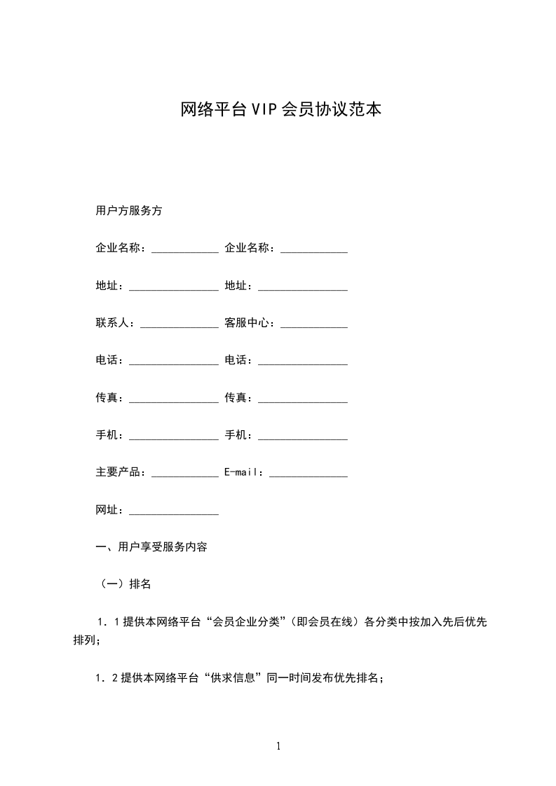 1.1提供本网络平台“会员企业分类”(即会员在线)各分类中按加入先后优先排列;