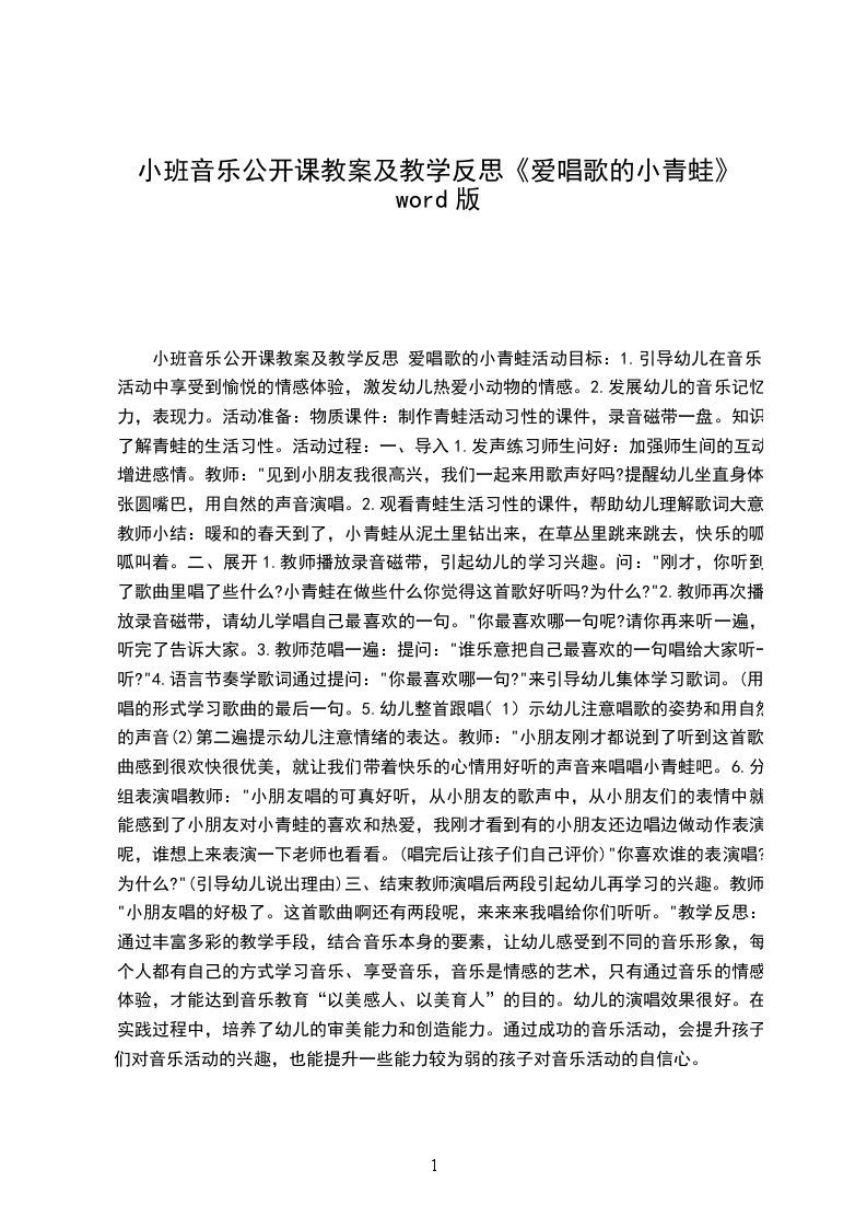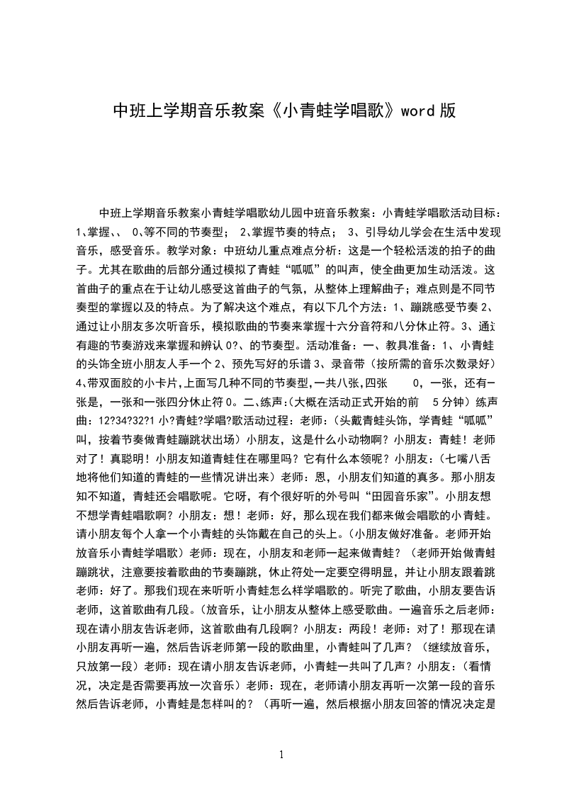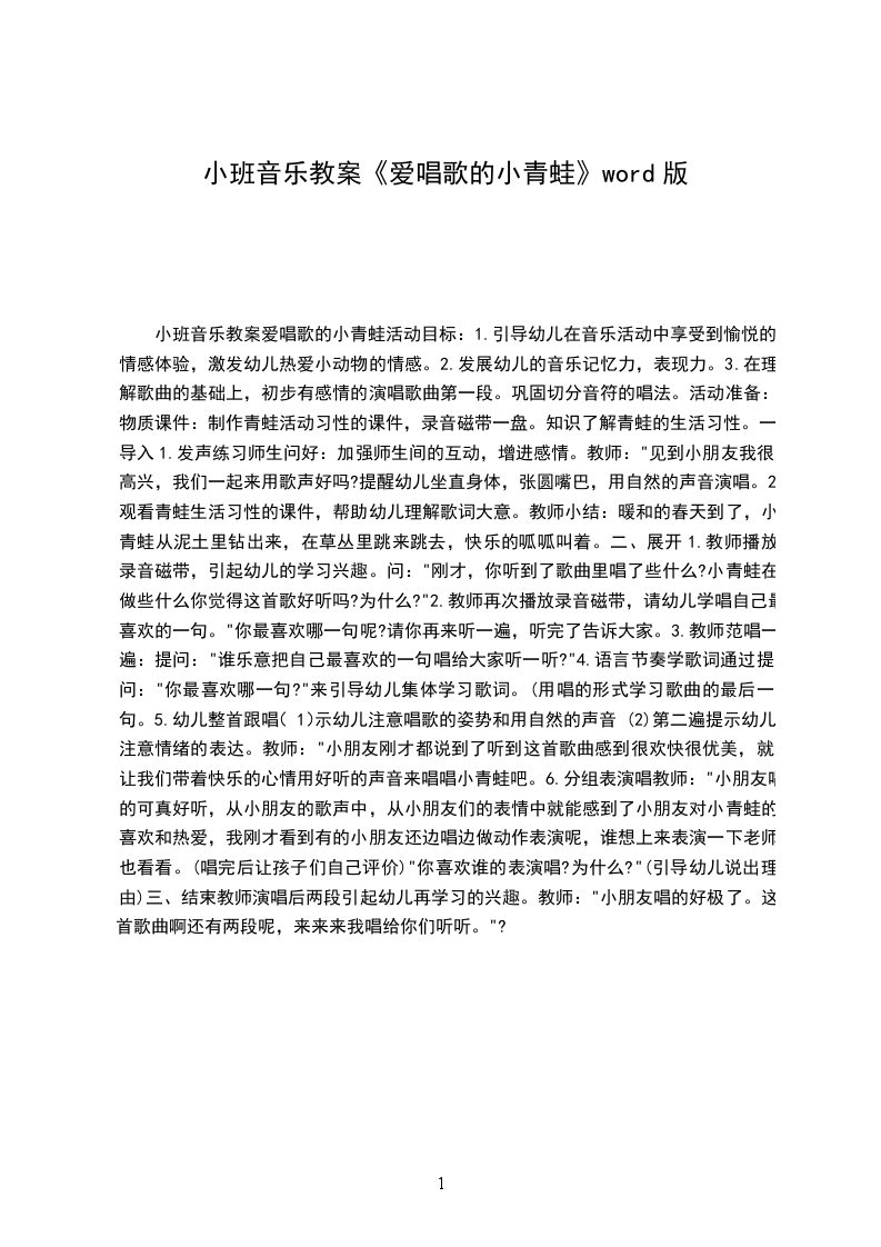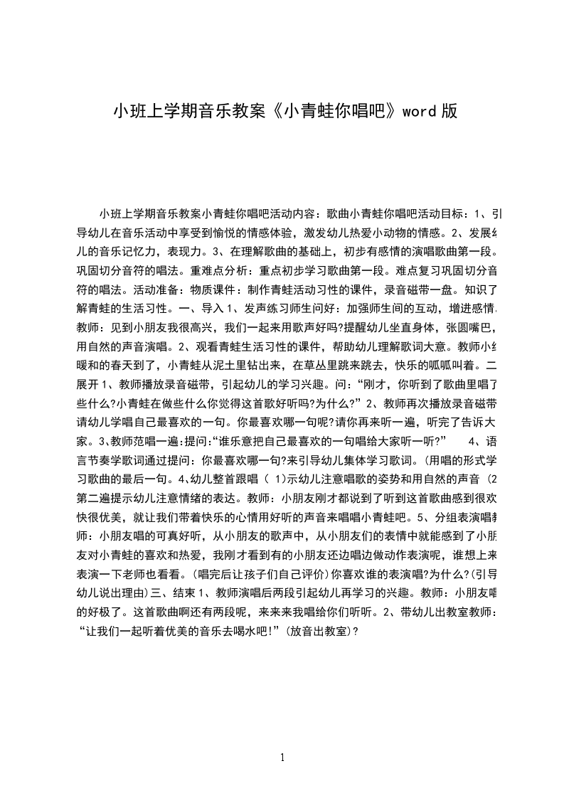 2、大胆想象青蛙的叫声,乐意用语言节奏创造性的表现。【活动准备】大荷叶、ppt、音乐。【活动过程】