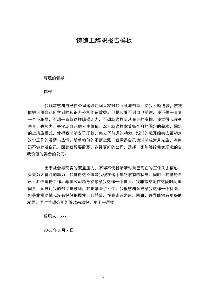 辞职人:xxx