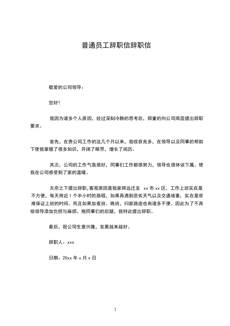 但是我因为个人原因需要辞职,因我新购房屋到公司的距离超过15公里,每天往返公司的时间超过3个小时,这对我的工作已造成不良影响。因此,我不得不忍痛离开热爱的岗位。