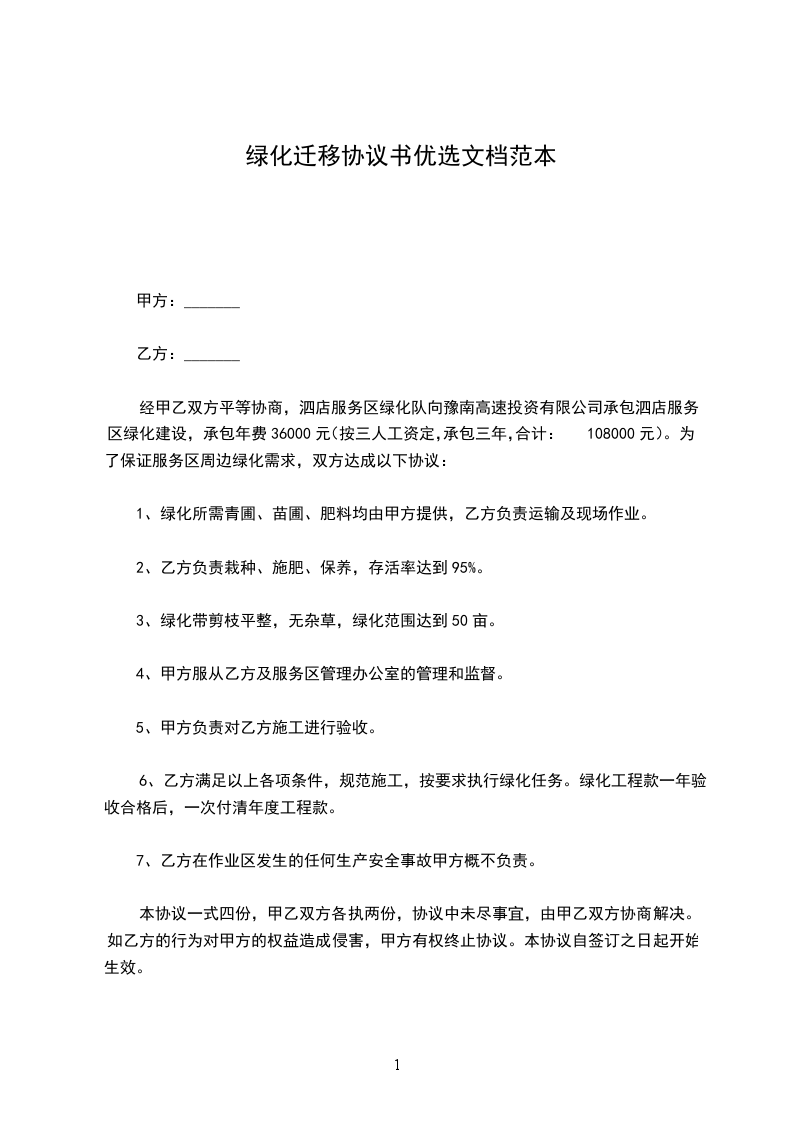 3.费用:此次迁移费用经双方协商以人民币______元包干,待苗木复种并通过区绿化办认可后一次性付清。(工程范围内以区水务公司提供的施工图纸为准,若工程超过该施工图的______%以上工程量,费用双方再进行协商);