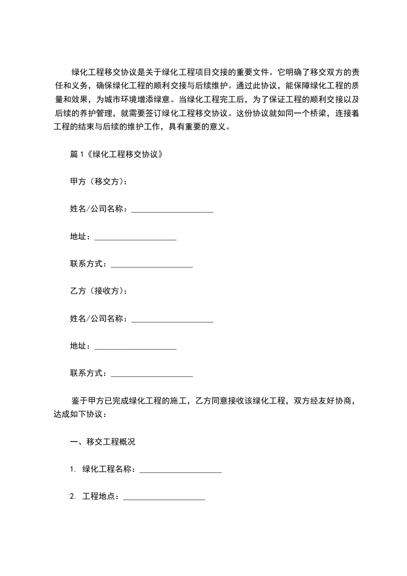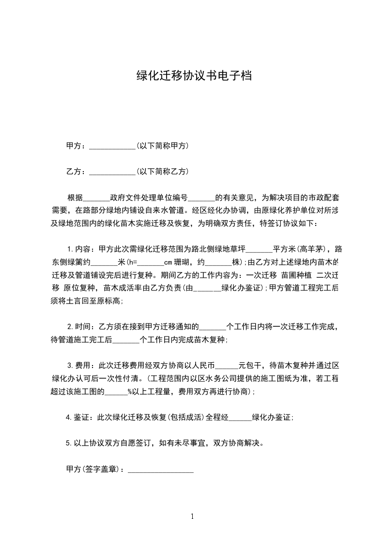 根据_______政府文件处理单位编号_______的有关意见,为解决项目的市政配套需要,在路部分绿地内铺设自来水管道。经区经化办协调,由原绿化养护单位对所涉及绿地范围内的绿化苗木实施迁移及恢复,为明确双方责任,特签订协议如下: