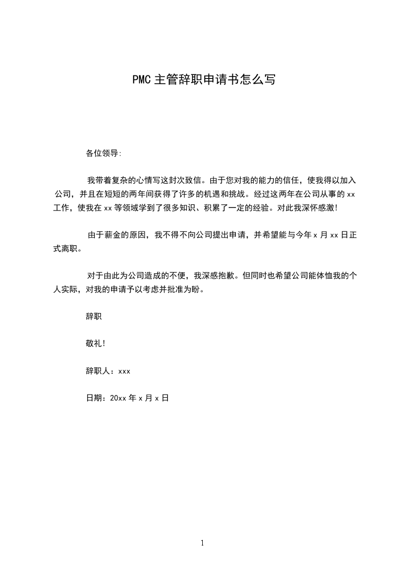 辞职人:xxx