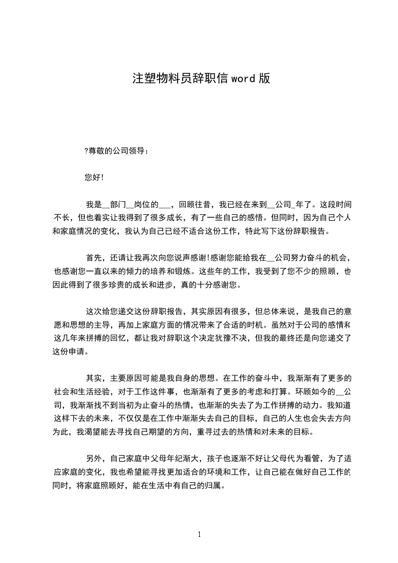 我是__部门__岗位的___,回顾往昔,我已经在来到__公司_年了。这段时间不长,但也着实让我得到了很多成长,有了一些自己的感悟。但同时,因为自己个人和家庭情况的变化,我认为自己已经不适合这份工作,特此写下这份辞职报告。