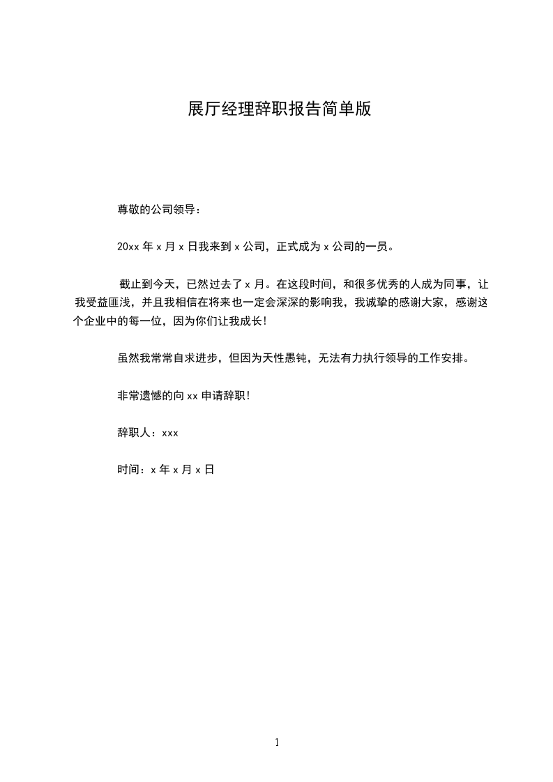 展陈设计师辞职报告范本
